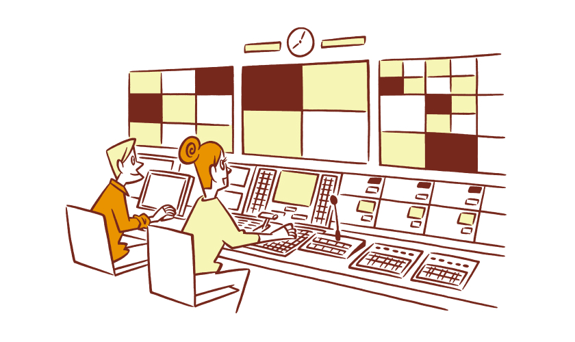 放送、通信、情報に関する設備の保守・運用を行う「システム管理」、放送マスターの送出・運用などの統括管理を行う「マスター統括」、放送免許管理や行政官庁への対応を行う規制対応などのほか、社内での放送に関わる仕事があります。